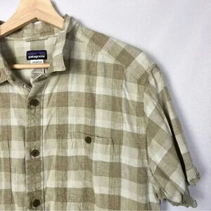 Patagonia Beige & Brown Migration Plaid Short Sleeve Button Down L