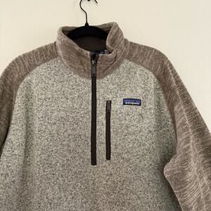 Patagonia Better Sweater 1/4-Zip Fleece Pullover in mens size extra extra large. Colorway BLPA (a heathered mix of light gray with brown sleeves). See pictures for color.