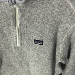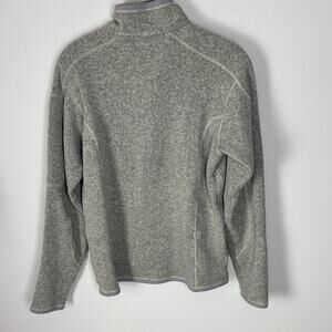 Gently Used Patagonia Quarter Zip Better Sweater Fleece. This is a women’s medium. Heathered light gray throughout. Vintage style Patagonia patch logo on the chest. Zipper pocket on the sleeve. 100% polyester.