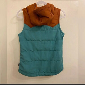 Patagonia Bivy Down Hooded Vest Mogul Blue Size Extra Small. Excellent pre-owned condition. No flaws. Rare Patagonia Vest. One inside pocket. Mushroom design inside jacket.