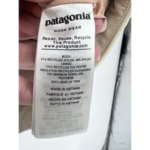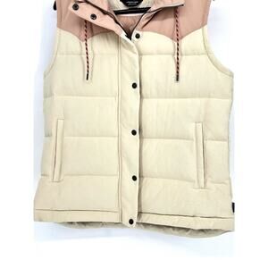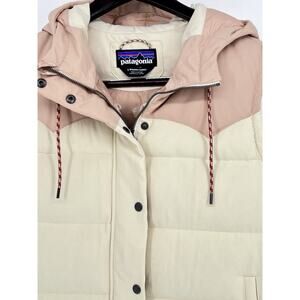 Patagonia Bivy Hooded Vest Cream/Pink Women’s Size Large Duck Down Warm Outdoors