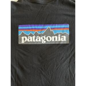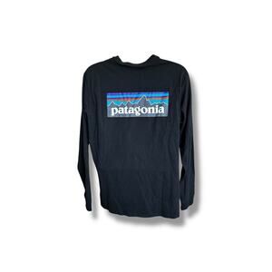 Patagonia long sleeve tee. recycled materials tee. unisex Patagonia shirt. black Patagonia shirt. Patagonia logo shirt.sustainable fashion tee.