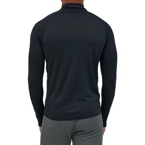 Sleek black quarter-zip sweatshirt. Long sleeves. Perfect for layering.