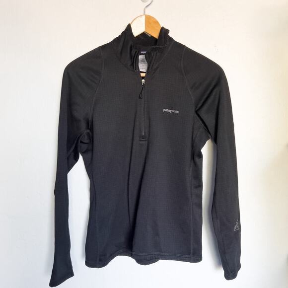 Sleek black jacket. Long sleeves. Half-zip front. Lightweight and comfortable.