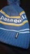 Patagonia Blue Beanie with Pom and Stripes