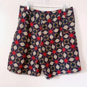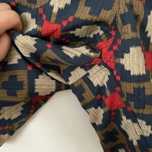 Blue red tan brown geometric print