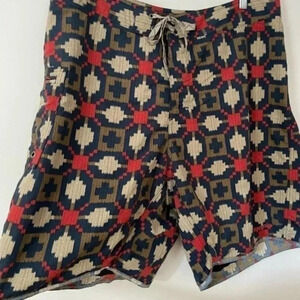 Patagonia Blue Tan Red Print Swim Board Shorts Mens 36