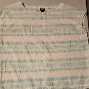 This Patagonia tank top showcases a classic blue and white striped design, perfect for a relaxed and stylish look. Made from a lightweight and breathable fabric, it offers comfort and ease for everyday wear. The sleeveless cut enhances its casual appeal, making it a versatile addition to any wardrobe.