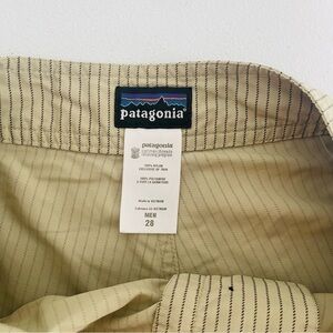 Patagonia Board Shorts Mens 28 Tan/Brown Pinstripe Swim Trunks 9.5” Inseam, Unlined