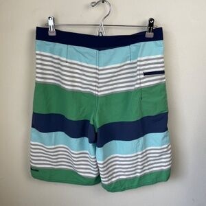 Our live-in-them boys’ boardshorts are made from quick-drying fabric for comfort in and out of the water. They have a single-button waistband, a forward inseam and a self-draining zippered pocket with key loop. The lightweight NetPlus® 100% postconsumer recycled nylon faille is made from recycled fishing nets to help reduce ocean plastic pollution; with a PFC-free DWR finish (durable water repellent coating that does not contain perfluorinated chemicals)
