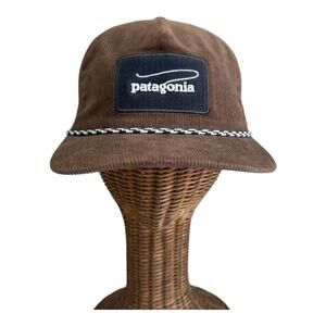 Patagonia Brown Corduroy Fly Catcher Snap Back Trucker Fishing Hat Cap.
