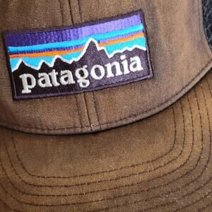 Patagonia Brown Distressed Mesh Back Trucker Snapback Hat Cap One size, adjustable.