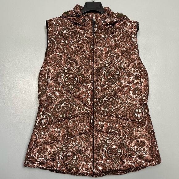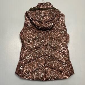 Patagonia Brown Paisley Hooded Down Puffer Vest Zip Up Women’s Size Large