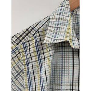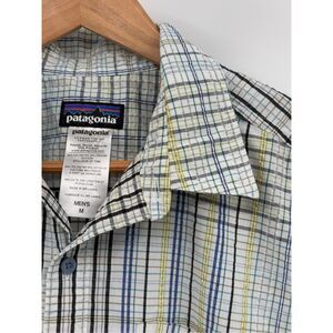 Patagonia Button Down Shirt Short Sleeve Puckerware Men Medium Plaid White Blue