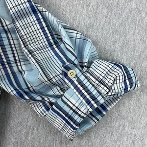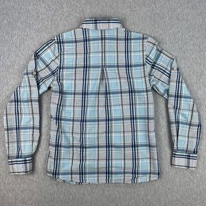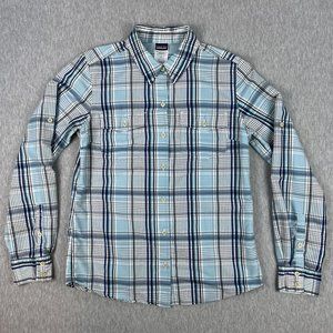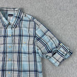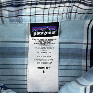 Patagonia Buttton-Up Shirt Womens 6 Plaid Blue Nylon Tencel Roll-Tab Sleeve
