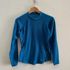 Women's Patagonia Capilene Blue Base Layer Tee Shirt Top Crew Hike Camp 44430 Small