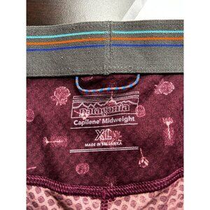 Patagonia Capilene Midweight Baselayer Bottoms Recycld Polyester Maroon Print XL