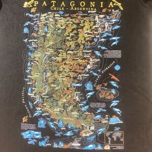 Patagonia map shirt, vintage Patagonia tee, Chile Argentina t-shirt, Carlos Fierro design, map print shirt, made in Chile tee, South America map shirt, geography travel tee, vintage tourist shirt, rare Patagonia souvenir