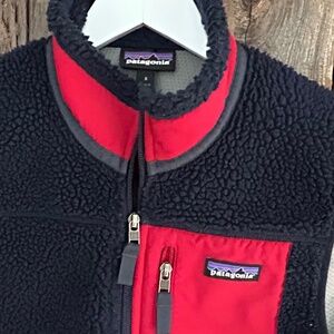 Patagonia Classic Deep Pile Retro X Fleece Navy/Red Vest SMALL S Mens