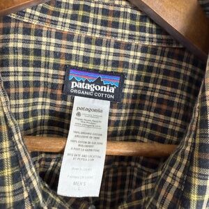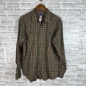 Patagonia Dark Outdoor Plaid Double Pocket Long Sleeve Button Up Shirt Men LARGE