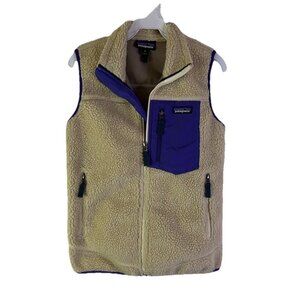 Patagonia Deep Pile Fleece Contrast Pocket Spell Out Vest Jacket