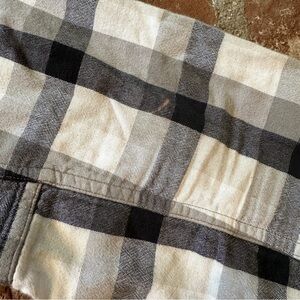 Super soft and cozy size 4 Double Weave Woven button down shirt with tapered arms. See photos for measurements. In excellent condition with one small mark as shown in 4th picture.