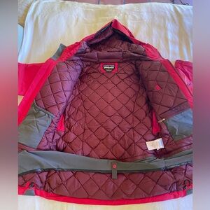 This is a 2017 Patagonia hardshell / down Ski parka. I wore it two seasons. It’s in excellent condition save some darkening from my radio harness on front and darkening on pockets from my avi pack belt. Darkening on wrist cuffs from my snow-sealed gloves. Really warm on those really cold days. Plenty of pockets for snacks and beacon storage. A helmet compatible hood, a powder skirt, and MOST importantly, Recco echo location for beacon searching.