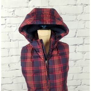 Patagonia Down With It Vest Women S Plaid Sherpa Lined Hooded Goose Down Warm