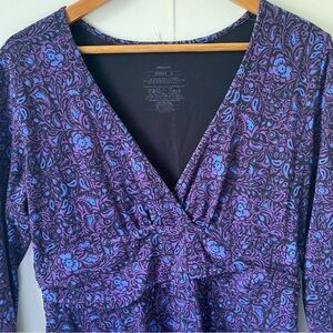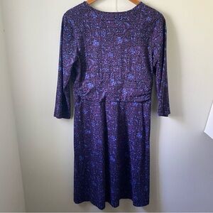 Patagonia Dress Organic Cotton Purple 3/4 sleeve Stretch Midi Fall Boho