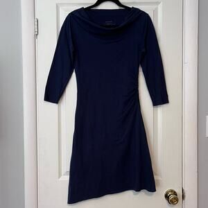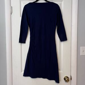 Super comfortable dress with scoop neck, 3/4 sleeves, a slightly asymmetrical skirt...and double layered fabric for warmth (see last photo).