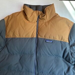 Gently used Patagonia Puffer Worn Wear Jacket Men's Size XXL. In very nice condition with no rips, tears or smells. Both zippers work fine. Grey and Brown. Made in Vietnam. Nylon, Polyester and Duck down insulation. Non-smoking home. STY28322