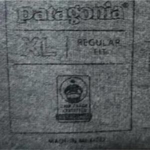 Patagonia's iconic mountain logo on front and colorful 1973 logo on back