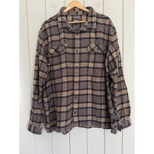 Patagonia Organic Cotton Fjord Flannel Shirt in brown and blue. Size XXL. Excellent condition.