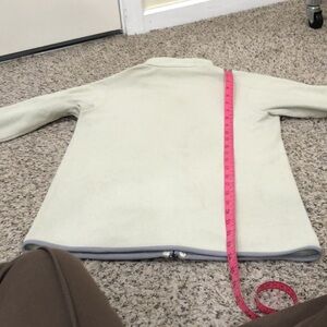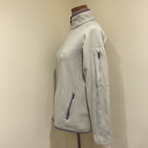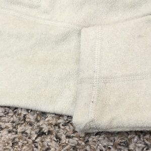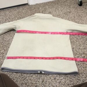 Good condition no fading or rips. Some very slight barely visible dinginess on the sleeves. Full zip, zippered pockets, arm pocket, funnel neck lightweight fleece jacket.