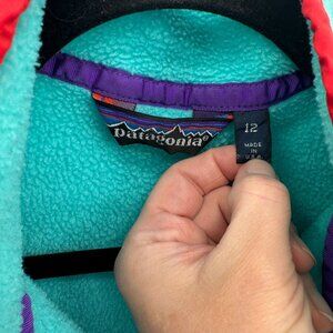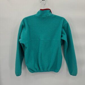 Patagonia Fleece Pullover WOMENS Size 12 Medium Teal Red Made USA VTG Cozy 90s