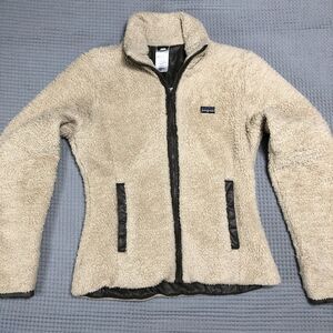 Patagonia Polar Fleece Zip Up Jacket Women M Ivory Sherpa Pocket Natural Warm