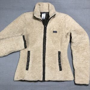 Patagonia Fuzzy Jacket Women M Polar Fleece Zip Up Ivory Sherpa Pocket Neutral