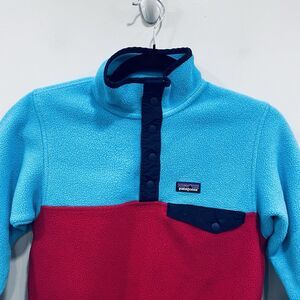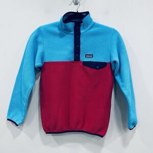 Patagonia Girl’s 10 M Synchilla Pullover T-Snap Fleece Blue Red Outdoor Hike Ski