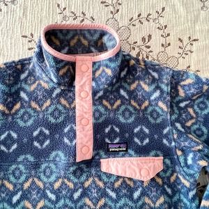Patagonia Girls' M(10) Lightweight Synchilla Snap-T Pullover Tundra Cluster Stone Blue Pink