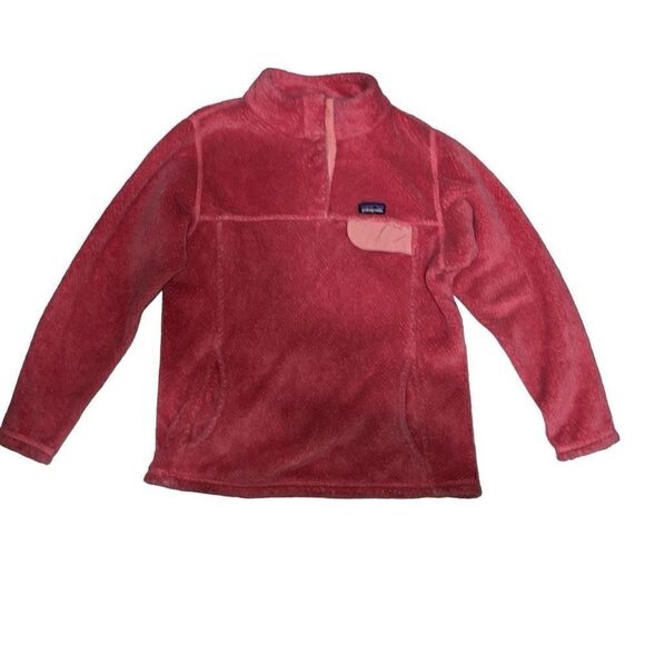 Patagonia Girls Snap-T Re-Tool Pullover Jacket Fleece Sz Large 12 Coral Rose