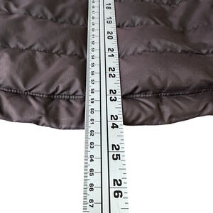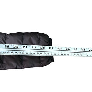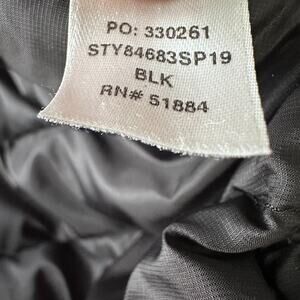 **Fair preowned condition. There’s a line stain and patch on the front, the black color has faded into a dark brown looking color, and the sleeves appear to have lost some filling, as seen in the last few pictures **