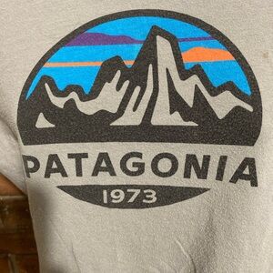 Stylish gray tee with iconic Patagonia mountain graphic. Soft and comfortable for everyday wear. Slim fit