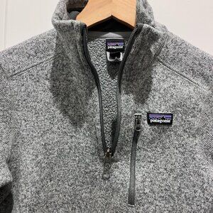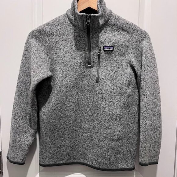 Cozy gray sweater. Half-zip design. Chest pocket for convenience. Perfect for cool weather.
