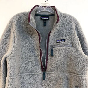 Patagonia Gray Sherpa Quarter Zip Logo Outdoor Casual Pullover Women's Medium