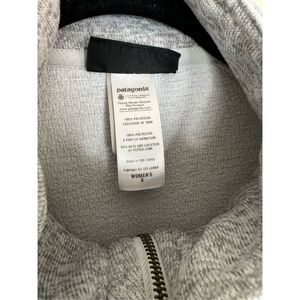 Stylish gray jacket by Patagonia. Features a high collar and button details. Perfect for casual wear.