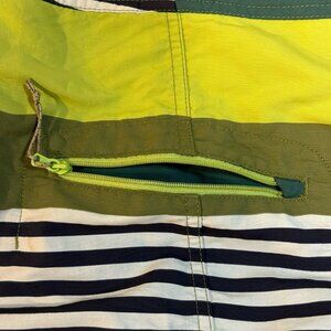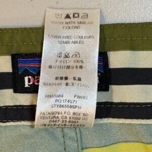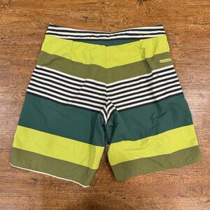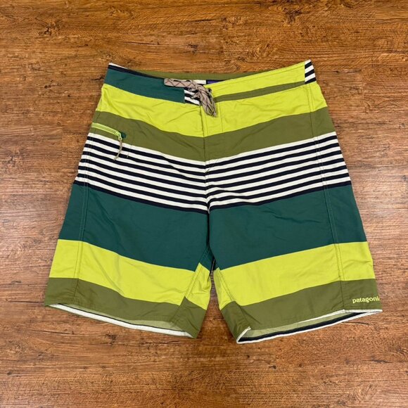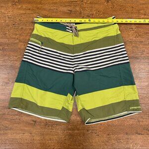 Patagonia Green Striped Wavefarer Board Shorts Swim Trunks Bermudas Men's 35x9