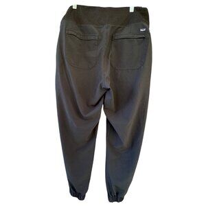 These Patagonia women's athletic pants, crafted from durable polyester and spandex, offer comfort and flexibility. Ideal for active lifestyles, they feature a sleek black design with convenient pockets.