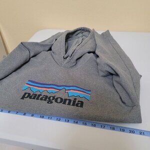 This Patagonia hoodie offers a blend of comfort and style, featuring a distinctive logo graphic on the chest. Designed for a regular fit, it promises warmth and durability, ideal for casual wear.