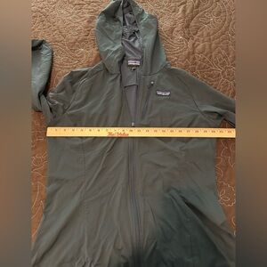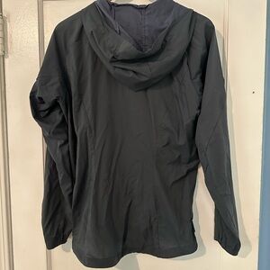 In good used condition Patagonia Houdini jacket. Women’s size large - navy blue. Love this lightweight jacket but it doesn’t fit anymore. From smoke free home - offers welcome!