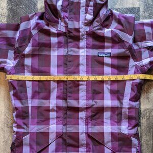 This is a Patagonia Sidewall Jacket in a pink purple plaid pattern, a rare style & colorway from 2009. It is in excellent condition, but does not come with the removable hood. It is a size XS, and the last three images show measurements. Adjustable powder skirt with stretch mesh panel, full wrap-around gripper elastic and three webbing loops to connect to any Patagonia Ski/Snowboard pants. Generous pit zips, articulated arms, handwarmer pockets, left bicep pocket, one internal stretch-mesh drop-in and one internal zip stash. Bottom hem drawcords adjust from inside handwarmer pockets; Hook-and-loop self-fabric cuff. Durable, yet flexible 2-layer shell features a H2No waterproof/breathable barrier and Deluge DWR (durable water repellent) finish to stop rain and snow; Lightweight compressible insulation that insulates even when wet. Smooth and warm fleece-lined neck. Style# 30881